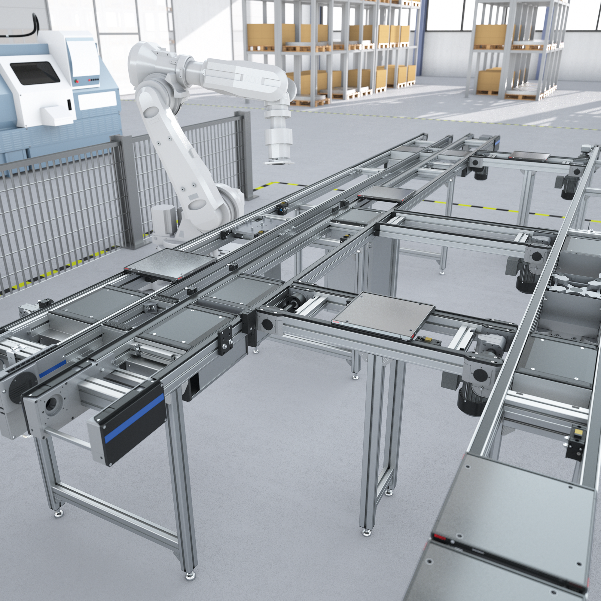 TS 2plus je primeren za kombinacijo ročnih in avtomatiziranih montažnih postaj, s premiki, orientacijo in kontrolo palet in izdelkov.