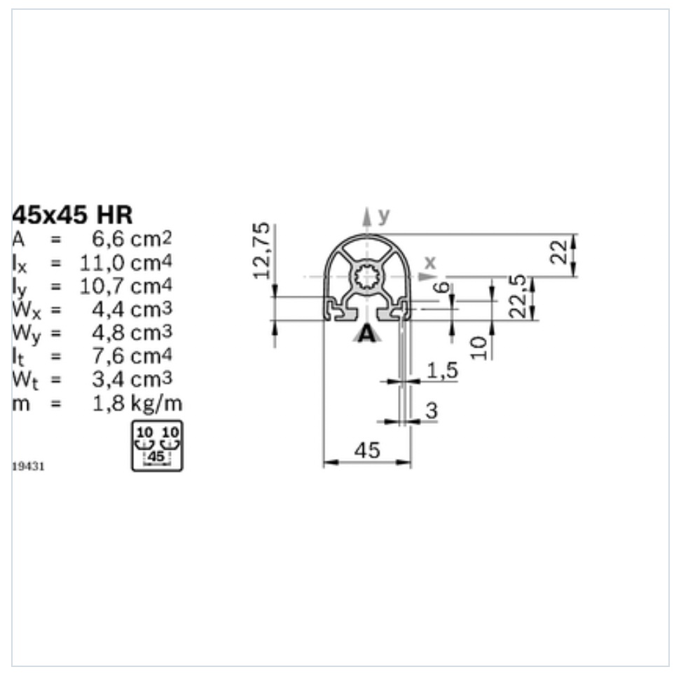 Aluminijasti profili 45 mm , z utorom 10 mm, so najbolj razširjeni v svetovni strojegradnji. Odlikuje jih predvsem idealno razmerje dimenzija – nosilnost . Uporabnost se še poveča s kombinacijo težke in lahke izvedbe profilov. Predvsem so primerni za zahtevne nosilne konstrukcije v strojegradnji , standardizirane delovne mize, pretočne regale, logistične vozičke , zaščitne ograje in panele.
