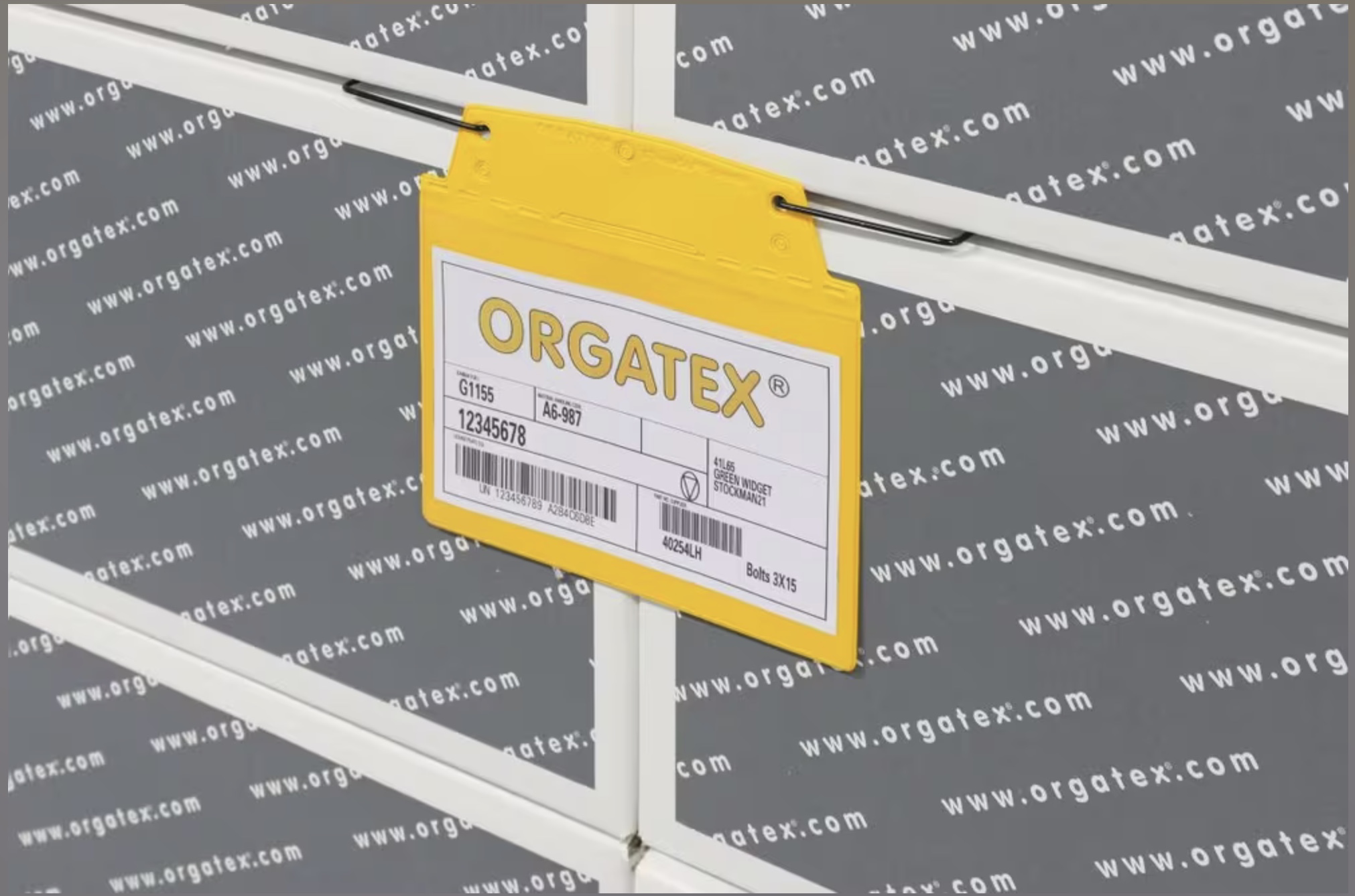 Zagotavlja zanesljivo pritrditev za kartonske škatle,zaboje, mrežaste zabojnike,…Nosilec se lahko obesi, pritrdi med reže z obračanjem.